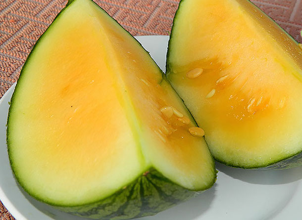 Арбуз сорта Оранжевый медок порадует садоводов ранними сроками созревания, высоким содержанием сахара и отличными вкусовыми качествами. Мякоть плода имеет непривычный оранжевый цвет. Вес ягод достигает 2,5 кг.