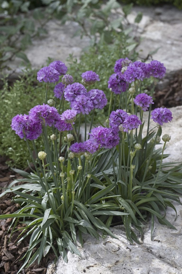 - Раннее и обильное по сравнению с другими сортами аремерий цветение. Цветы сиреневой окраски, достаточно крупные, шаровидной формы.