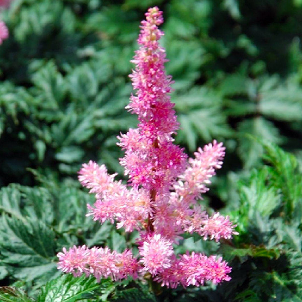 Рассада Астильбы курчавой Перкео (Perkeo) вырастает до 20 сантиметров в высоту. Из семян получаются миниатюрные растения, которые отлично подходят для озеленения. Цветение происходит с последней декады июня до первой половины августа. Подходящее место для посадки - вблизи воды либо во влажных тенистых местах. Пышные соцветия представляют собой конусообразные ярко-розовые цветки с ажурными листьями. Листья в начале цветения отличаются бронзовым отливом. Кусты отлично смотрятся среди декоративных хвойных пород. К особенностям Астильбы курчавой Перкео можно отнести: