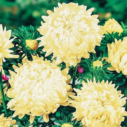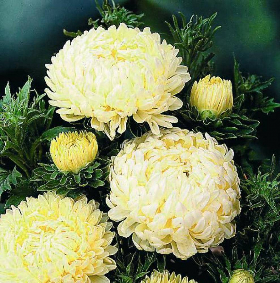 Семена астры китайской Старый замок селект Золотой можно выращивать через рассаду или помещать сразу в грунт. Взрослое растение достигает 60-70 сантиметров в высоту. На каждом кусте формируется до 12 цветоносов с пышными цветами золотисто-желтого оттенка. Основным предназначением сорта является срезка, но также кусты используют для создания эффектных одиночных посадок.