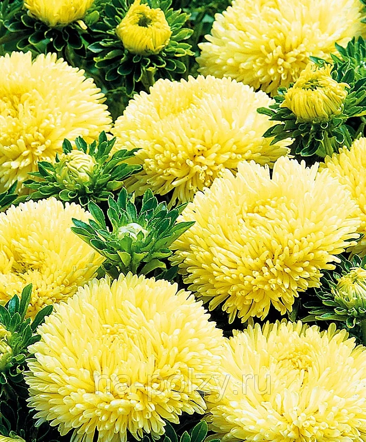 Астра пионовидная Дюшес желтая