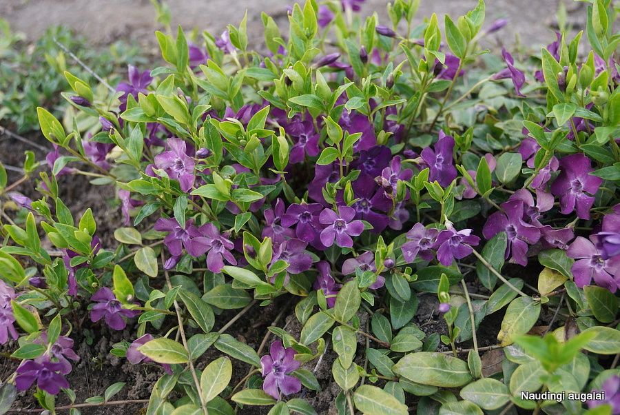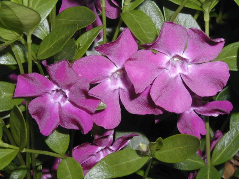 Рассада барвинка Atropurpurea (Атропурпуреа) разрастается в ширину до 60 см, а в высоту поднимается лишь на 30 см. Листочки густо покрывают веточки. Они небольшие, кожистые и имеют темно-зеленый цвет. Зацветает растение из семян барвинка Atropurpurea в мае. На протяжении месяца кустарник усеян фиолетово-пурпурными цветочками, состоящие из пяти лепестков. Иногда растение цветет повторно. Достоинства рассады барвинка Atropurpurea: может расти в полной тени и на солнце, только тогда нужен обильный полив, хорошо переносит морозы, не нуждается в укрытии. Больше всего подходит дренированная и увлажненная почва.
