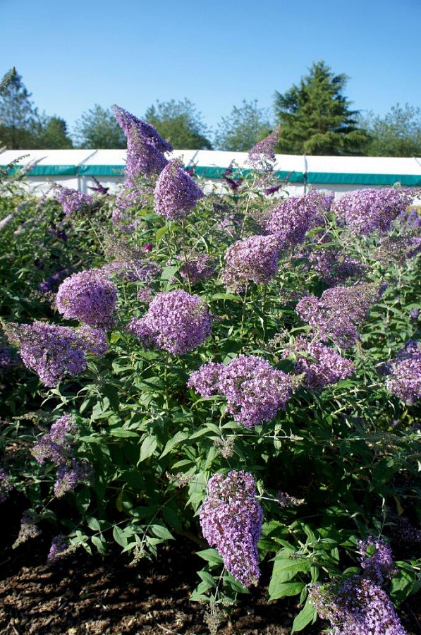 Саженцы Буддлеи Давида Гулливер (Buddleja davidii) названа в честь французского ботаника, впервые описавшего этот сорт. Это компактный куст, высотой до 100 сантиметров. Его крона плотная и широкая, диметром до 120 сантиметров. Название сорта дано на фоне уникальных крупных колосовидных соцветий, длина которых доходит до 50 сантиметров. Цветет кустарник с июля по сентябрь розовыми фиолетовыми цветками в виде шипов. Листья овально-ланцетной формы зеленого окраса. Сорт предпочитает солнечное открытое место. В тени его соцветия могут стать мельче. Лучше растет на плодородной умеренно увлажненной почве. Растение морозоустойчиво.