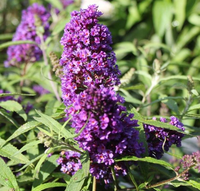 Саженцы Буддлеи Давида Иль де Франс (Buddleja davidii) – листопадный декоративный кустарник, высотой до 200 сантиметров. Его крона плотная, широкая, диаметром около 250 сантиметров. Ежегодный прирост – 30 сантиметров. Сорт Иль де Франс характеризуется уникальными поникающими соцветиями фиолетового, лилового окраса, длиной около 40 сантиметров. Цветет кустарник с июля по октябрь. Листья зеленого тона, удлиненно-ланцетные. Буддлея Иль де Франс не терпит пронизывающие ветра, предпочитает открытое солнечное место. Хорошо себя чувствует на плодородной, известковой, дренированной почве. Отличается морозоустойчивостью.