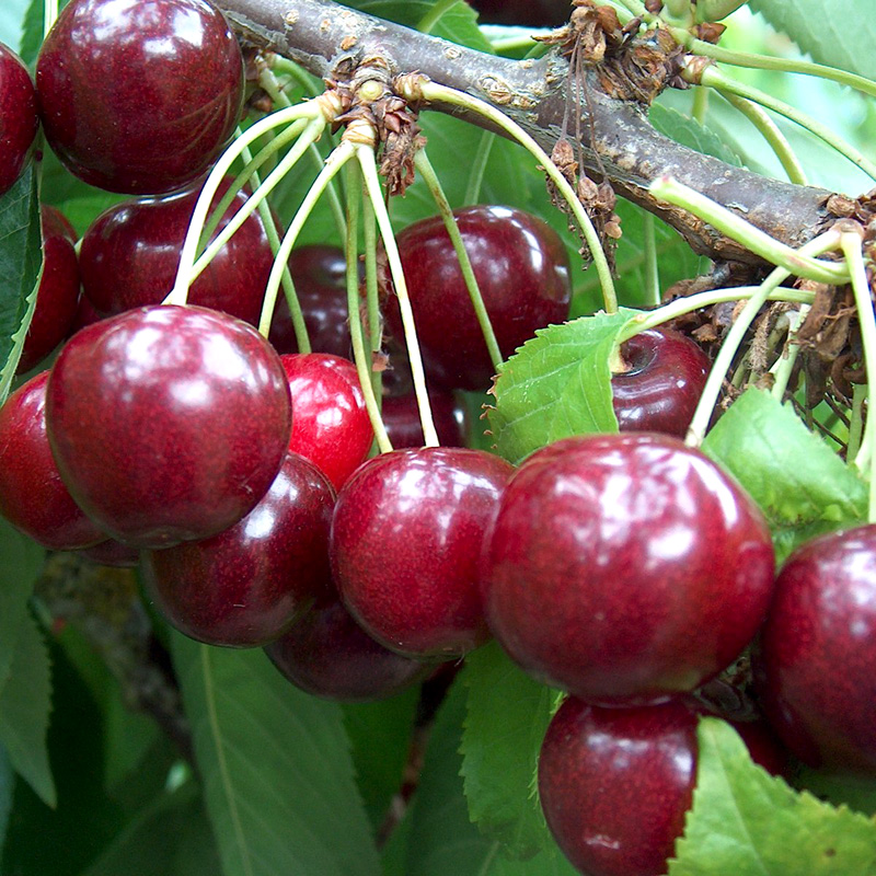 Саженцы черешни Аделина относятся к высокоурожайным сортам со средним сроком созревания. Высота взрослого дерева не превышает 3,5 метров. Первый урожай можно ожидать на четвертый год посадки крупномера черешни.
