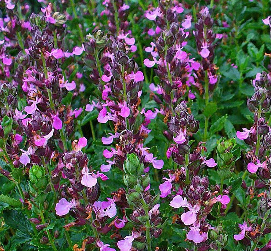Рассада дубровника обыкновенного используется для украшения каменистых участков, создания ярких групповых посадок и эффектных смешанных композиций. Высота взрослого растения не превышает 50 сантиметров. В конце лета на длинных стебельках распускаются нежные розовые цветы. Этот сорт отлично сочетается с соцветиями декоративных многолетников желтых, белых или синих оттенков.