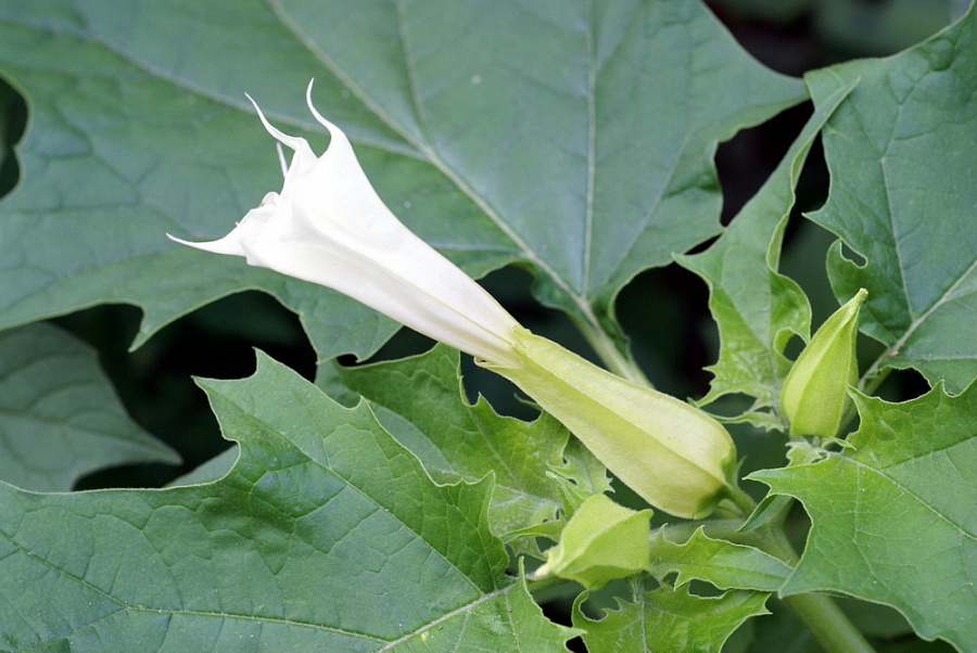Семена дурмана «Белый» высевают в горшки с марта по апрель. Первые всходы появляются через две-три недели. В конце мая рассаду дурмана «Белый» высаживают в открытую почву. Место для высадки выбирают солнечное и защищенное от ветров. Цветет однолетник с июля до середины августа. Цветы крупны и подняты вверх. Имеют белоснежный окрас. Высота растения варьируется от 70 см до 1 метра. Сорт семян дурмана «Белый» используют для создания высоких одиночных и групповых цветников, оформления рабаток, беседок, патио. Все части растения ядовиты, поэтому после прикасания к нему необходимо тщательно мыть руки.