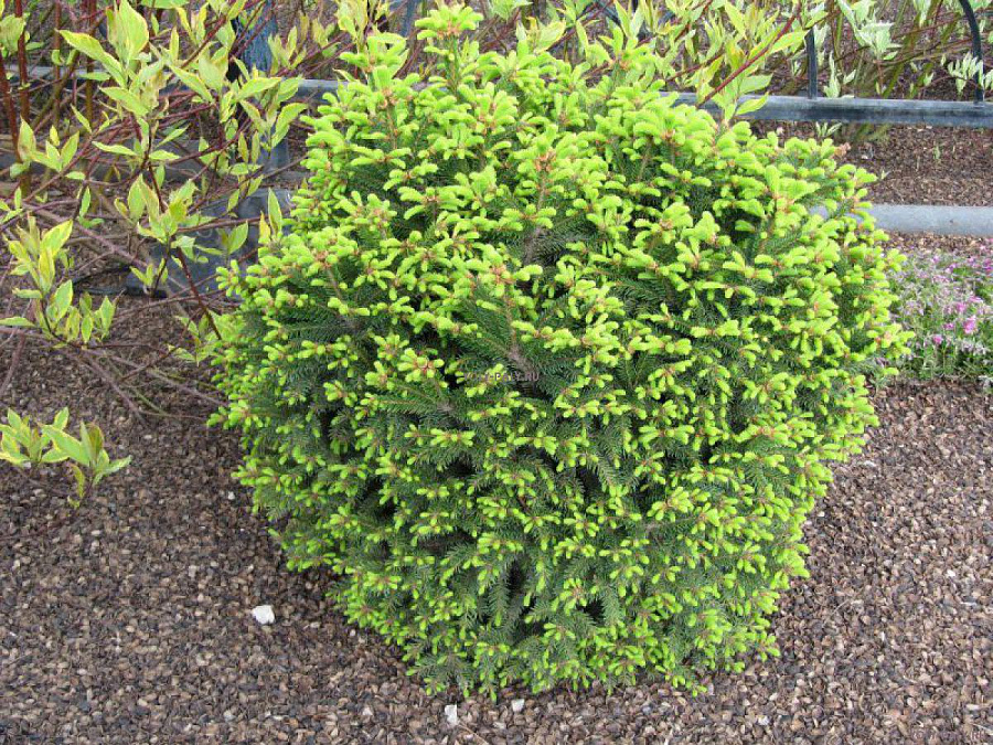 Саженцы ели обыкновенной Барри (Barryi) – необычный карликовый сорт, у отдельного деревца может развиваться несколько стволов и макушек крон. Молодые растения имеют шаровидную форму, по мере роста, вытягиваются в коническую. Ствол мощный; ветви крепкие, разрастаются вверх и в стороны. Крупномер вырастает до 3 м в высоту. Хвоя короткая, глянцевая. Наибольшую декоративность ель обыкновенная Барри приобретает весной, когда на фоне темно-зеленой хвои пробивается молодая зелень побегов.