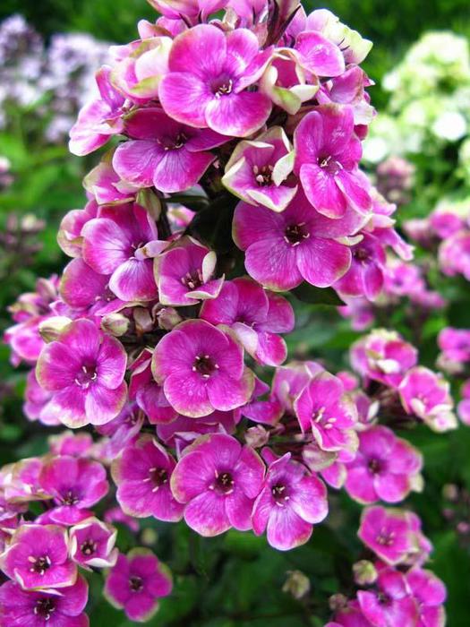 Рассада флокса метельчатого Ореол (Aureole) подарит саду яркое и пышное цветение в сочетании с приятным ароматом. Соцветия у этого растения довольно плотные и раскрывшиеся бутончики соприкасаются друг с другом, практически полностью перекрывая нежную листву и прочные стебли.
