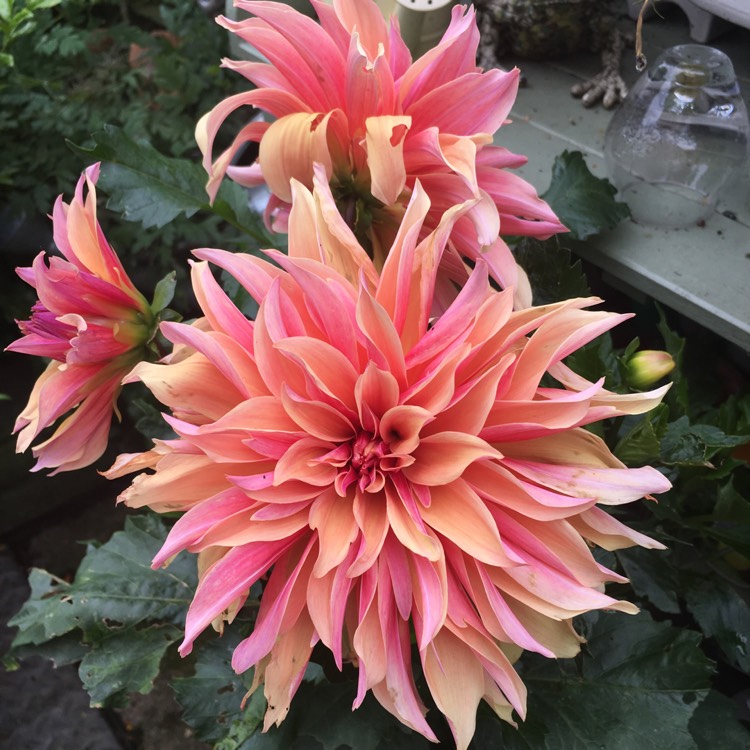 Окраска цветка : ярко-розовый центр с кремово-розовыми краями, лепестки подкручиваются