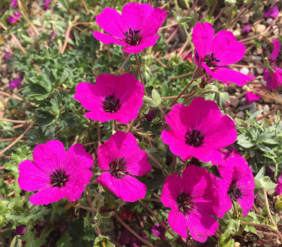 Рассада герани пепельной Signal (Аистов клюв Geranium cinereum) нуждается в рыхлых, хорошо дренированных почвах и солнечном местоположении. В уходе культура неприхотлива, главное – не допускать переувлажнения. Сорт холодостойкий, засухоустойчивый, прекрасно переносит любое соседство. Формирует плотные кустики высотой до 15-20 см. Листочки насыщенно-зеленые, округлые, ажурные. Не теряют свой декоративный вид до глубокой осени. Цветет герань пепельная Signal яркими малиновыми цветочками. Используют культуру для оформления различных цветников, рокариев, выращивания в контейнерах.