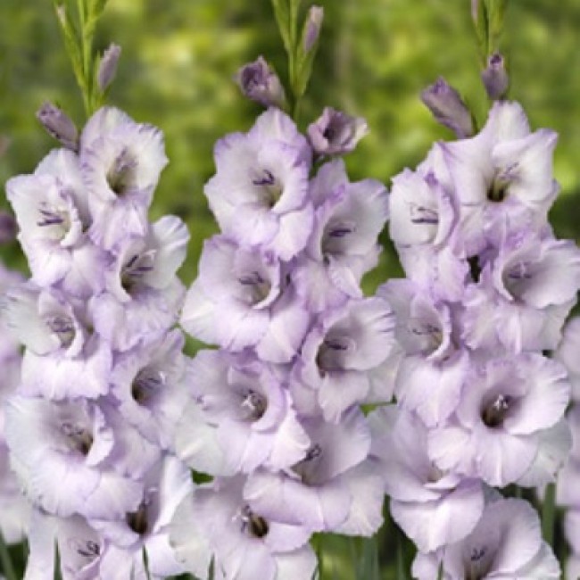 Луковицы гладиолуса крупноцветкового Видео ‒ яркий многолетний сорт для цветников и букетов, который станет главным акцентом в сложных композициях. Он цветет во второй половине лета и в начале осени. На одном цветоносе одновременно раскрывается большое количество бутонов, собранных в соцветия. Они махровые, с яркими сиренево-голубыми краями и светлым центром. Дополнят праздничные композиции и различные варианты ландшафтного дизайна, но также хорошо смотрятся самостоятельно. Гладиолус вырастает до 80‒110 сантиметров в высоту и подходит для среза, долго хранится в составе букетов.