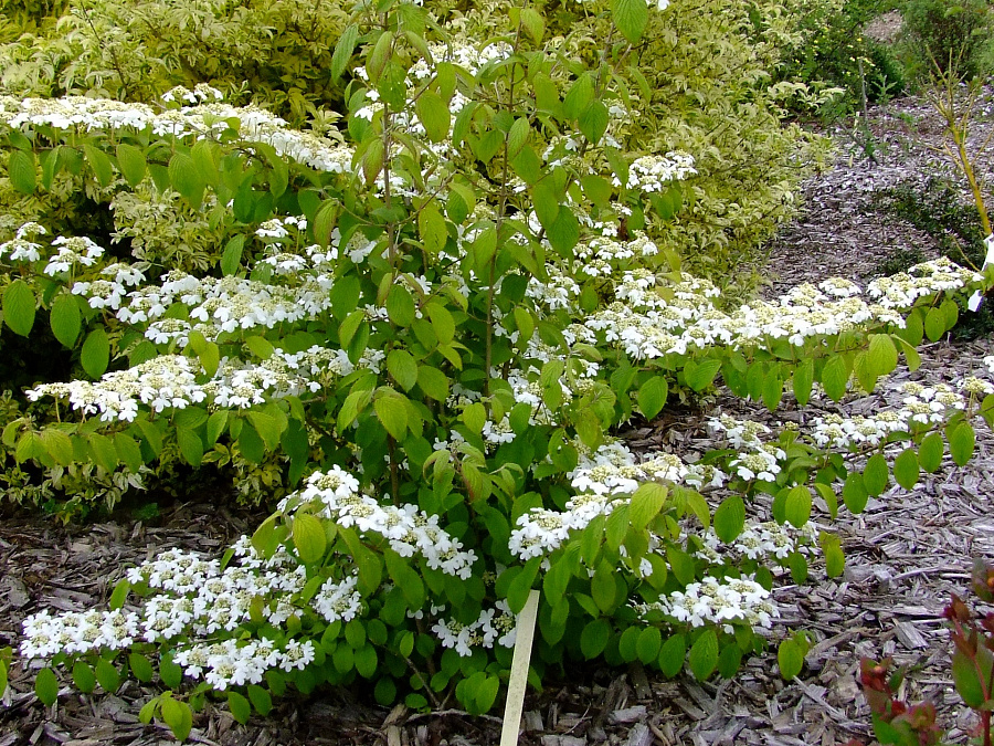 Саженцы калины Килиманджаро (Kilimandjaro), которая получила второе название «складчатая», обладают узкой вертикальной кроной пирамидальной формы. Темно-зеленые листья к осени становятся пурпурно-красными. Чисто-белые крупные цветочки собраны в кластеры и сосредоточены на краях соцветий.