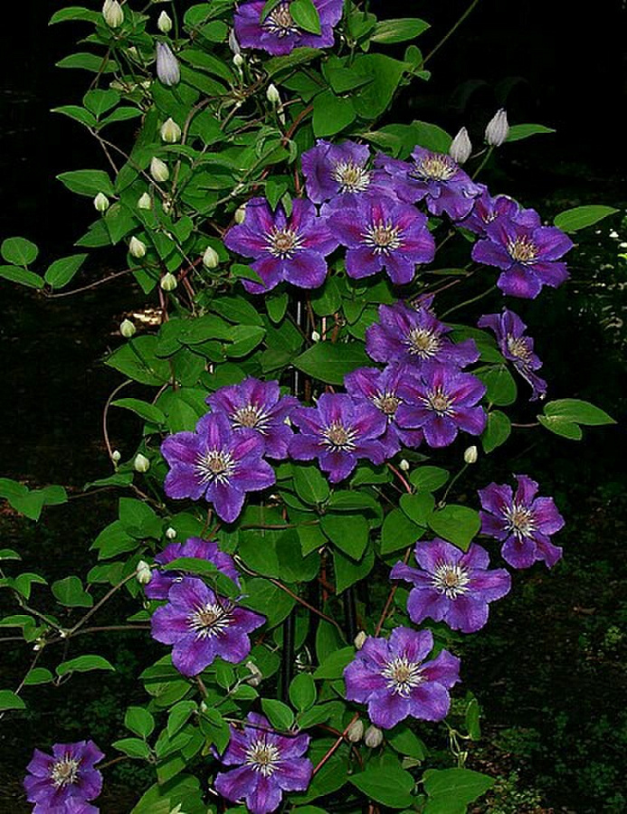 Саженцы клематиса гибридного Ашва (Ashva) предпочитают защищенные участки сада, находящиеся в полутени. Не требовательны к типу и составу почвы. Цветки округлой формы с изогнутыми краями, диаметром 5-8 см. Окраска цветка фиолетовая с пурпурной полоской, центр темнее. Цветет обильно с июня по сентябрь на побегах текущего года. Клематис гибридный Ашва (Ashva) растет сдержанно, достигая высоты 150-200 см. Требуется опора, за которую растение будет цепляться листовыми черешками. Подходит для выращивания у беседок, пергол и других вертикальных элементов сада.