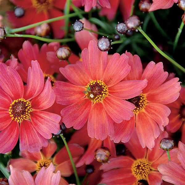 Кореопсис Ром Пунш - это настоящий цветочный коктейль для вашего сада! Это растение поразит вас своей красотой и изысканностью. Сорт rum punch обладает розово-красными цветками, которые будут радовать вас в течение трех месяцев весной и летом. Высота растения достигает 40 см, что делает его идеальным для создания красивых цветочных композиций. Листья кореопсиса имеют светло-зеленую окраску и необычную форму, что придает растению особый шарм.