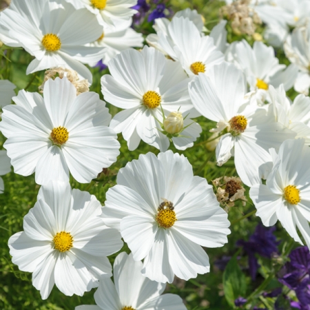 Космея Сенсация Белая - это великолепное растение с изысканными белыми цветками, которые будут радовать ваш взор в течение нескольких месяцев весной и летом. Ее стебли прочные и прямостоящие, достигают высоты до 90 см, а диаметр цветков составляет 7-10 см. Листья космеи имеют интересную форму и добавляют декоративности этому растению.