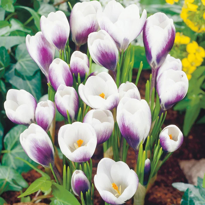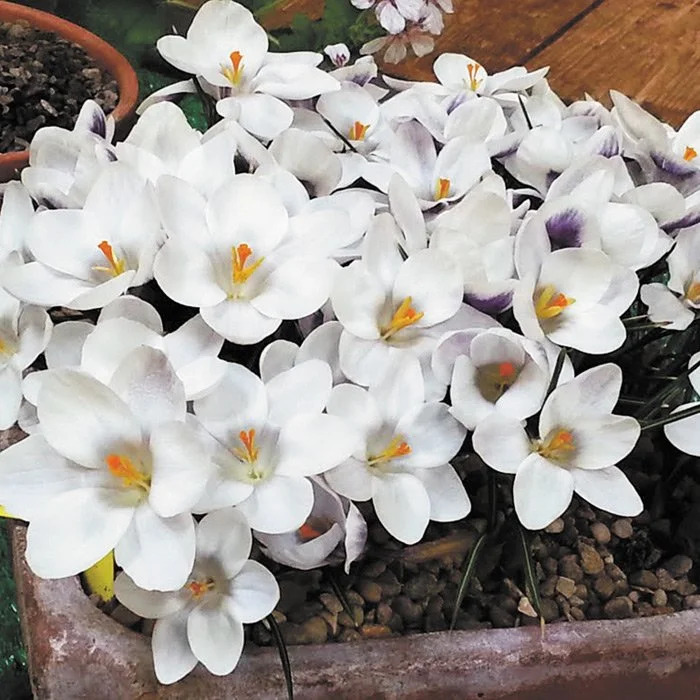 Луковицы крокуса ботанического Принц Клаус (Prins Claus) хорошо переносят зиму и вырастают в простые и изысканные растения с нежными цветами. По белым лепесткам бутонов будто прошлись кистью с сиреневой краской, оставив легкие мазки. В центре раскрывшихся чаш сияют ярко-желтые сердцевины. Цветы крокуса ботанического Принц Клаус распускаются ранней весной и радуют глаз среди снежных проталин.