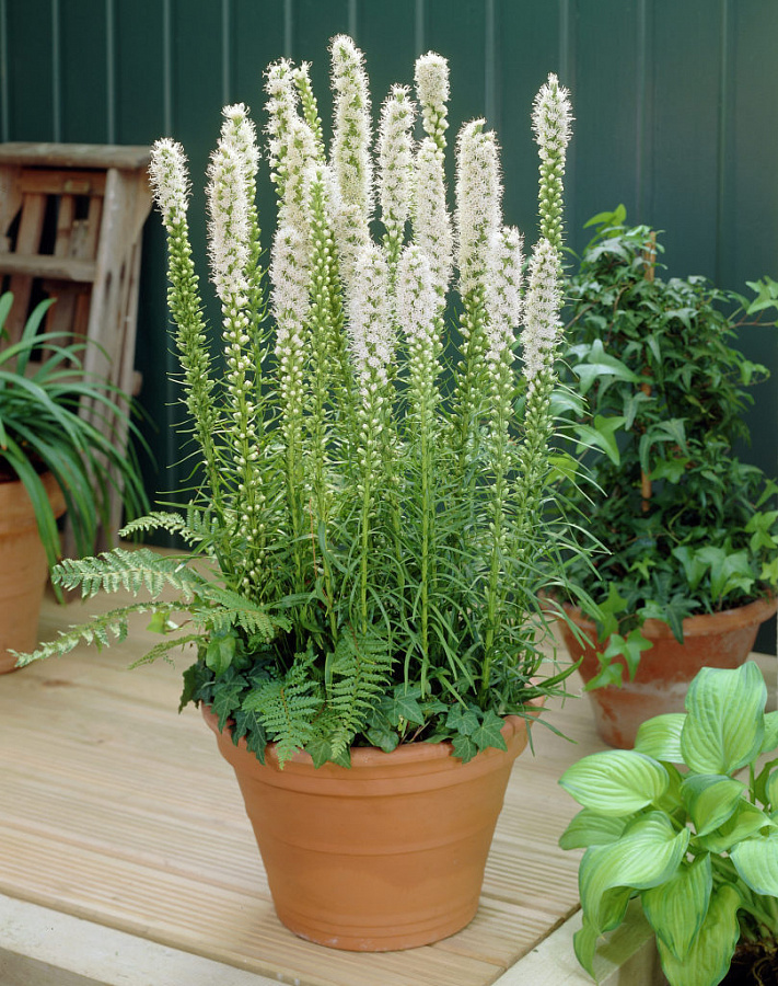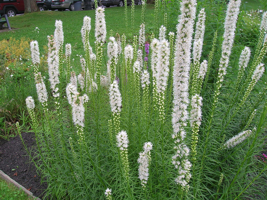 Рассада лиатриса Альба (Alba) отличается эстетичностью форм. Имеет многолистный стебель, который увенчанный изящной розетку соцветий свечеподобной формы. Вырастает около 70-80 см в высоту. Цветет в июне-июле белым цветом. Свечеподобная форма соцветия начинает распускаться с верху в низ что выглядит очень необычно. Преимущества лиатриса Альба: