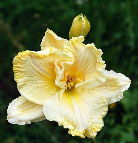 Окраска цветка : Кремовая с жёлтой каймой и зелёным горлом
