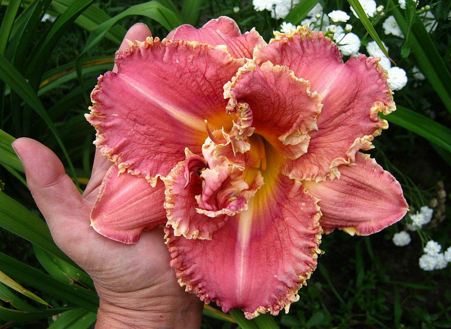 Рассада цветов Сьюзан Причард Петит (Susan Pritchard Petit) – это многолетнее травянистое растение с дуговыми листьями у корней. Цветы вырастают до 15 см в диаметре. Они махровые бордово-розового цвета. Время появления цветов – это конец июля. Лилейник хорошо приживается на солнышке или в легкой тени, лучше делать высадку на плодородных почвах, которые при этом хорошо дренируются. Высота взрослого растения достигает 50 см, а ширина 60 см. Листья Сьюзан Причард Петит зеленые, а цветы формируются только ближе к августу. Рассаду часто используют для оформления разных цветников, групповых или одиночных композиций в садах.