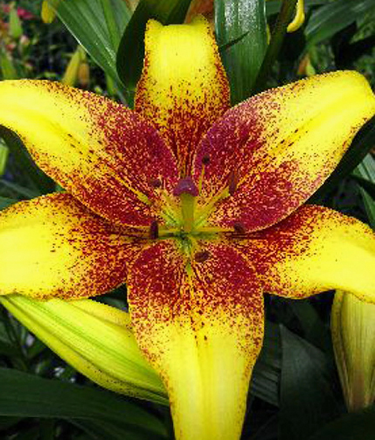 • Окраска цветка : ярко-жёлтый с бордово-красным напылением в середине