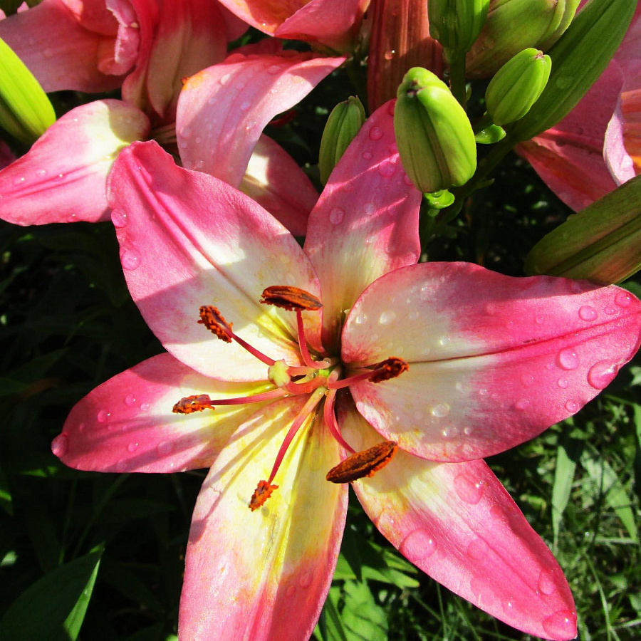 Луковицы лилии Lollypop абсолютно неприхотливы в уходе и подходят для выращивания даже малоопытному садоводу. Высаживают растение на хорошо освещенных участках в лунки на расстоянии до 25 см. Культура любит питательную рыхлую почву, хорошо зимует без укрытия. Вырастает лилия Lollypop в высоту до 120 см. Цветки крупные, чашевидные, диаметром до 15-20 см. Лепестки двухцветные: серединка белая, а кончики ярко-малиновые. Особенность сорта – практически полное отсутствие аромата. Растение используют для цветников и выращивания на срез.