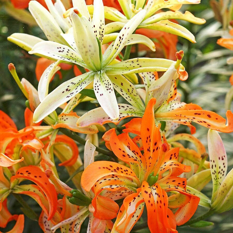 Окраска цветка : цветы ярко-оранжевые с темными вкраплениями, со временем меняются на белые с салатовым центром, крап остается, цветение длительное