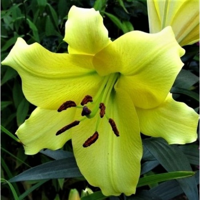 Лилия от-гибрид Понтиак - это великолепное растение с яркими лимонно-желтыми цветками, которые привлекают внимание своей красотой и изысканностью. Высота этого растения может достигать 100-120 см, что делает его заметным акцентом в любом саду или огороде. Листья лилии имеют интересную форму и зеленую летнюю окраску, что добавляет растению дополнительный шарм.