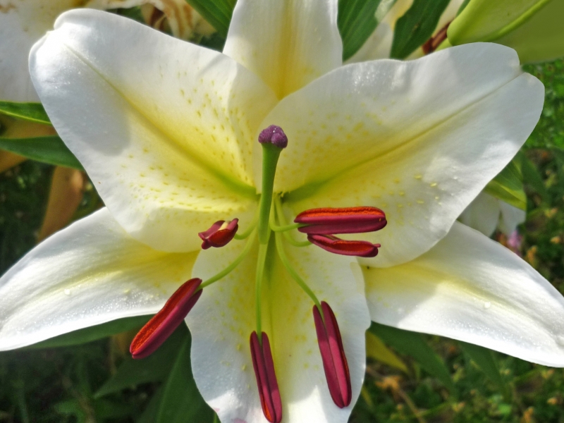 Листья лилии имеют уникальную форму, добавляя текстуру и объем вашему зеленому уголку. Это растение предпочитает дренированные богатые почвы и яркий солнечный свет. Регулярный полив и удобрения помогут лилии процветать и радовать вас своими яркими цветами.