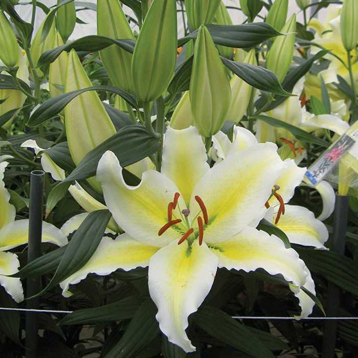 Лилия восточная Chill Out - это настоящий оазис спокойствия и красоты в вашем саду. Ее желтые цветы с белой каймой напоминают лучи солнца, проникающие сквозь облака. Высота растения может достигать до 100 см, создавая великолепный фон для других растений в вашем саду.