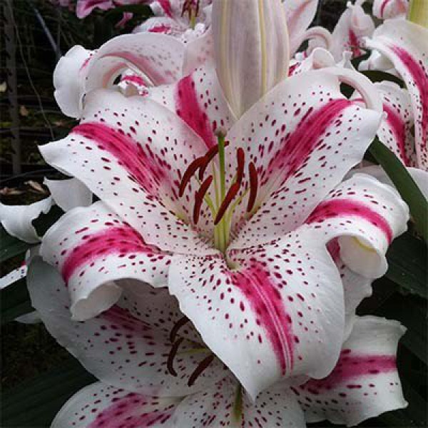 Лилия восточная Spectator - это изысканное растение, которое поразит вас своей красотой и изяществом. Ее крупные цветки белого цвета с нежными малиновыми мазками создадут удивительный акцент в вашем саду или огороде. Высота растения может достигать до 120 см, что делает его заметным элементом в ландшафте. Листья лилии имеют форму, придающую растению особый шарм.