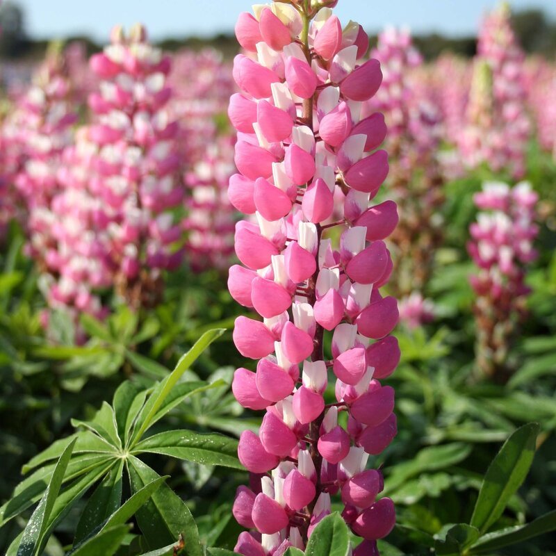 Семена люпина сорта Чателайн порадуют садоводов красивым цветением и простым уходом. В июне на растениях высотой около 120 см появляются пирамидально-колосовидные соцветия, состоящие из небольших цветков двойной розово-белой окраски.