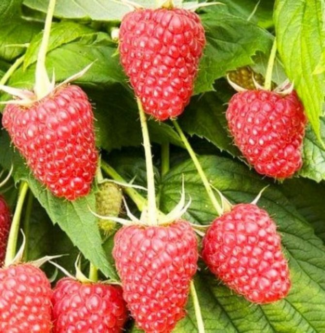 Саженцы малины Таруса относятся к штамбовым сортам. Это растение не нуждается в создании поддерживающей опоры, поэтому его нередко называют малиновым деревом. Взрослый кустарник вырастает до двух метров в высоту и на каждой ветке размещается по паре десятков ароматных ягод. Каждый крупномер малины способен дать около 4 кг плодов за сезон. Ягоды крупные и немного удлиненные. Созревшие плоды источают невероятный аромат и не опадают с плодоножки. Саженцы малины данного сорта не имеют шипов. Кустарник неприхотлив. Поэтому его могут смело приобретать даже начинающие садоводы без соответствующего опыта.