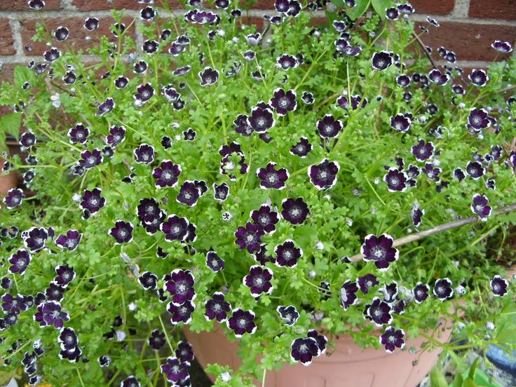 Семена немофилы обыкновенной (Nemophila menziesii) Пенни блек, высаженные в апреле, дадут вам цветущий с июня по сентябрь удивительный по красоте экзотичный коврик. Все дело в необычной окраске цветков этого сорта — лепестки имеют почти черный цвет и белую кайму по краям. Цветы одиночные, мелкие, около 3 сантиметров в диаметре. Листья удлиненные, перистые. Стебли стелющиеся, до 15 сантиметров высотой. Чтобы получить плотную полянку цветов и зелени, семена следует высаживать на расстоянии 10-20 сантиметров друг от друга. Немофила предпочитает полутень и влажный грунт. Выигрышно смотрится в рабатках, бордюрах, горшечных композициях.