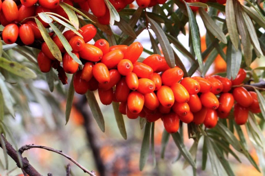 Саженцы облепихи Джемовой (Hippophae rhamnoides) станут настоящим украшением сада или дачного участка. Это среднерослый куст с неколючими побегами и эффектной округлой формой кроны. Его лучше высаживать на открытом солнце, на плодородной почве, тогда растение начнет плодоносить уже на четвертый год после высадки в грунт. Саженцы женского пола, поэтому их необходимо разместить рядом с мужским экземпляром для опыления цветков. В начале осени на побегах начинают появляться ягоды, которые быстро приобретают яркий оранжевый оттенок. Они сладкие, с кислым привкусом, среднего размера (0,9 грамм). Плоды используются для приготовления джемов, варенья, мармелада и любых видов консервации, а также пригодны для заморозки. Сорт Джемовая отличается высокой зимостойкостью и переносит заморозки до минус 35 градусов.