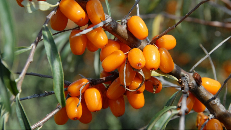 - дерево крепкое, среднерослое. Крупномеры облепихи Алтайская выдерживают низкие температуры. Ягоды – кладезь витаминов и минералов для организма.