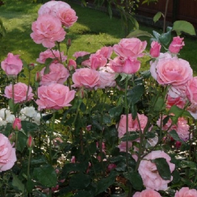 Роза Флорибунда Queen of England - это изысканное растение с неповторимым очарованием. Ее ствол устойчивый, листья крупные и глянцевые, создают великолепный контраст с нежными цветами розового оттенка. Это растение прекрасно подойдет для обогащенных почв и будет радовать вас своим цветением на протяжении всего сезона.