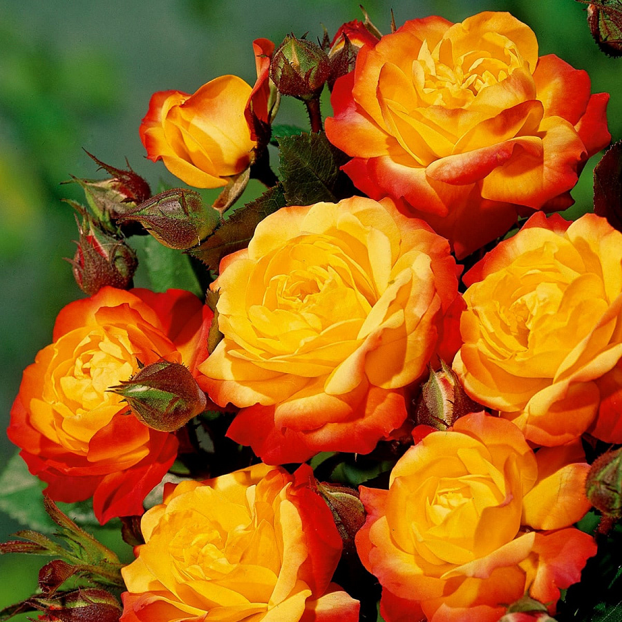 Во время цветения саженцы розы Румба выпускают стебли, на которых распускается от 3 до 15 цветков. Растение хорошо переносит дожди и при должном уходе не подвергается заболеваниям.