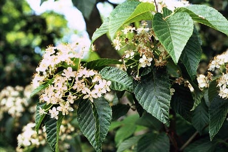 Этот вид рябины имеет красивые цветочки, которые появляются на дереве в мае. Кристально белые лепестки притягивают взгляд, хорошо контрастируют с основным тоном кроны. Плоды хоть и невкусные, но выглядят броско. Украшают сад на протяжении долгого времени.