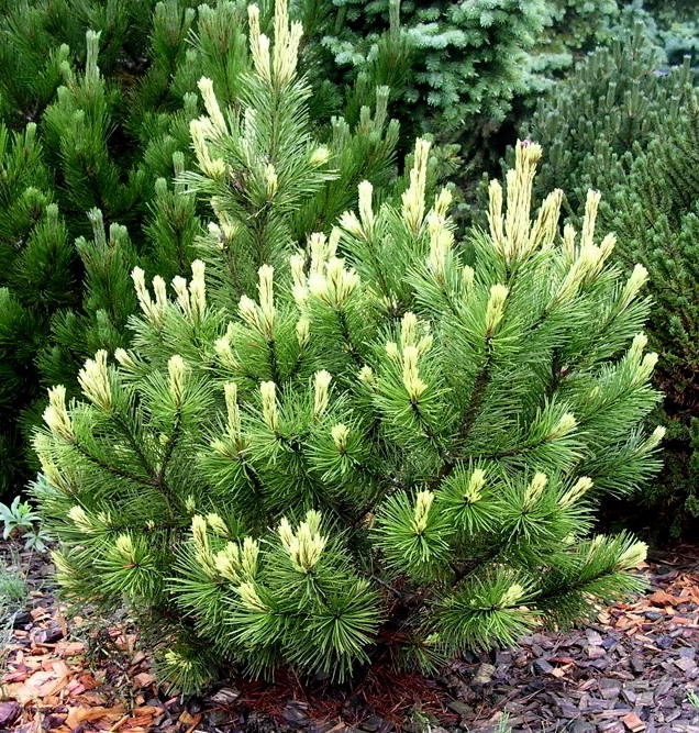 Саженцы сосны горной: шаровидные хвойные кустарники дают простор для идей оформления участков. Компактные и живописные крупномеры вырастают в среднем до 1м в высоту. Отличаются густыми кронами, мелкой жесткой хвоей и разнообразными зелеными оттенками от золотистого до лимонного. Плодоносят мелкими круглыми шишками. Сосна горная хорошо сочетается с любыми хвойными и лиственными насаждениями. Достоинства:
