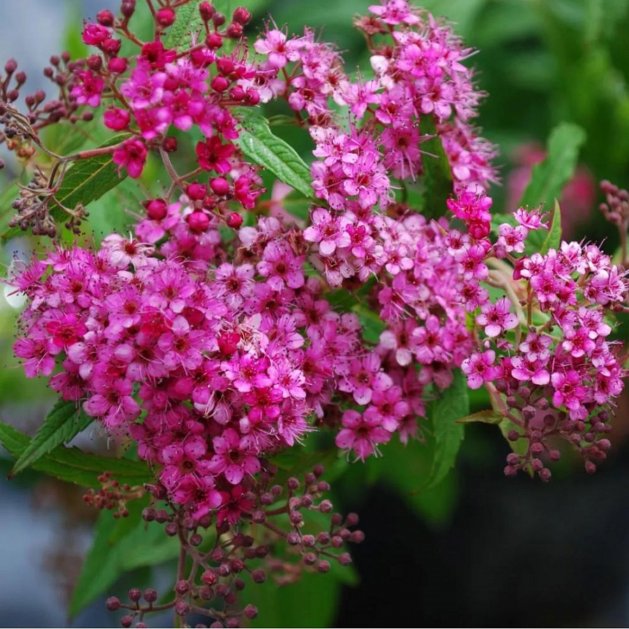Саженцы японской спиреи Зигунерблют (Zigeunerblut) порадуют опытных и начинающих садоводов высокими декоративными свойствами. Пышные кустарники могут стать элементом живой изгороди или гармонично вписаться в композицию с невысокими деревьями. Характеристики крупномера спиреи Зигунерблют: цвет листвы – молодые красноватые листья темнеют и становятся зелеными; размер листьев – до 8 см; цветы – темно-красные, собранные в щитковидные соцветия диаметром около 12 см. Саженцы спиреи Зигунерблют хорошо растут на солнечных участках. Форму кустарника можно корректировать обрезкой.