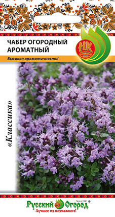 Семена чабера "Ароматный" высевают на постоянное место в грунт по окончании заморозков. Лучше всего культура растет на суглинистых и супесчаных почвах. При температуре 15-20 градусов всходы появляются на 8-10 день. Сорт семян чабера "Ароматный" среднеспелый. От появления всходов до цветения проходит 45-48 дней. Высота растения до 50 см, масса зелени около 140 грамм. Цветок светло-фиолетового цвета. Ароматичность сильная. Если растение засушить, его аромат станет сильнее. Используется пряность в свежем и сушенном виде в домашней кулинарии, для приготовления уксусов и маринадов. Обладает бактерицидными свойствами. Срезают растения в период массового цветения. Урожайность до 2 кг/кв.м.