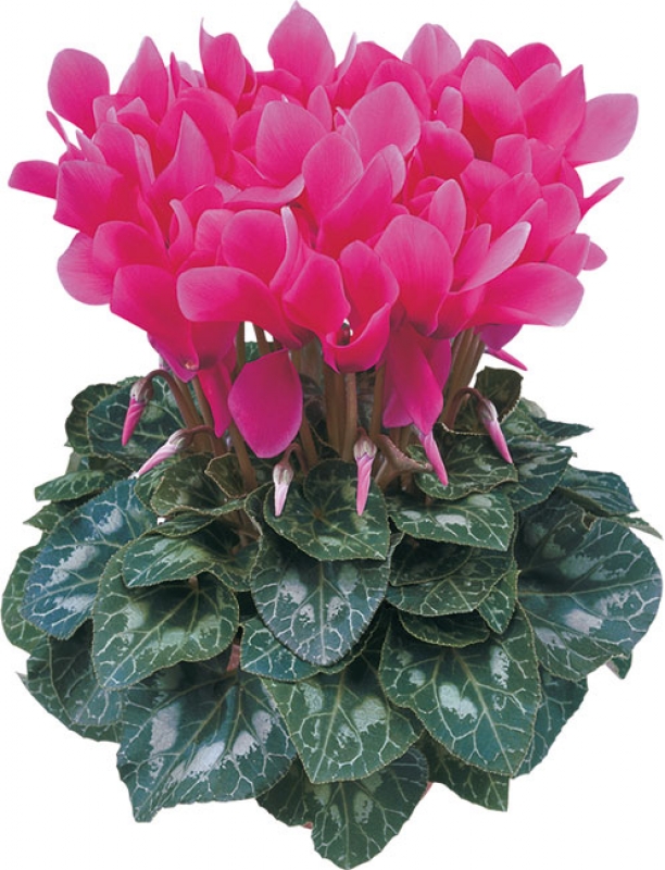 Цикламен персидский концерто роуз - это изысканное растение с нежными розовыми цветками, которые привлекают внимание своей красотой. Его листья зеленые с белыми разводами, создавая уникальный и яркий вид. Растение достигает высоты до 25 см, идеально подходит для групповых и одиночных посадок.