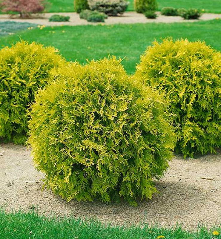 Саженцы туи западной Мириам (Mirjam) подарят саду вечнозеленый кустарник с плотной шаровидной кроной. Хвоинки расположены вертикально, плотно прилегают одна к другой. Окраска хвои меняется в течение года: