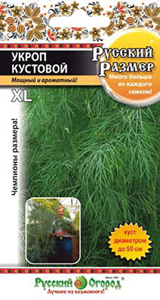 Семена укропа "Русский размер" — это уникальный и высоко ароматичный сорт. Розетка листьев достаточно мощная. Содержит крупные, сильнорассеченные листья, которые образуют густой и раскидистый кустик. Его ширина достигает до 50 см в диаметре. На протяжении длительного времени на культуре не образуется цветонос. Поэтому зеленая масса очень долго остается нежной на вкус. Ароматность очень высокая. Сорт семян укропа "Русский размер" пригоден для использования не только в свежем виде, но также сушеном и замороженном.