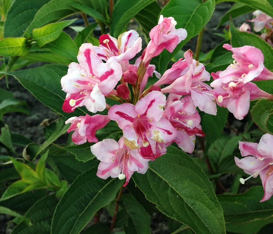 Саженцы вейгелы цветущей Розеа (Rosea) порадуют очень крупными цветками и полушаровидной формой кроны. У взрослого кустарника крона становится более раскидистой. Основным достоинством этого сорта является хорошая морозоустойчивость, но молодые кустики все же лучше укрывать на зиму. Цветки воронковидно-колокольчатой формы имеют ярко-розовый или пурпурно-красный оттенок, иногда с белым зевом. Посадку крупномеров лучше проводить на плодородных и хорошо увлажненных почвах. Вейгела цветущая Розеа с успехом используется для озеленения придомовых территорий.